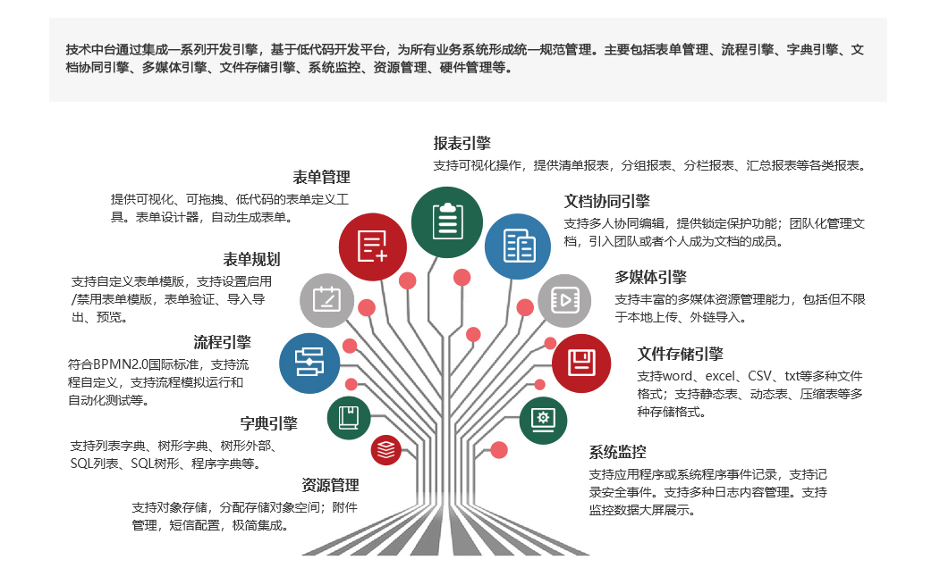包含通知公告、部隊要訊、公文辦理、值班交班、工作計劃、文化共享、即使通訊、文件打印功能模塊。